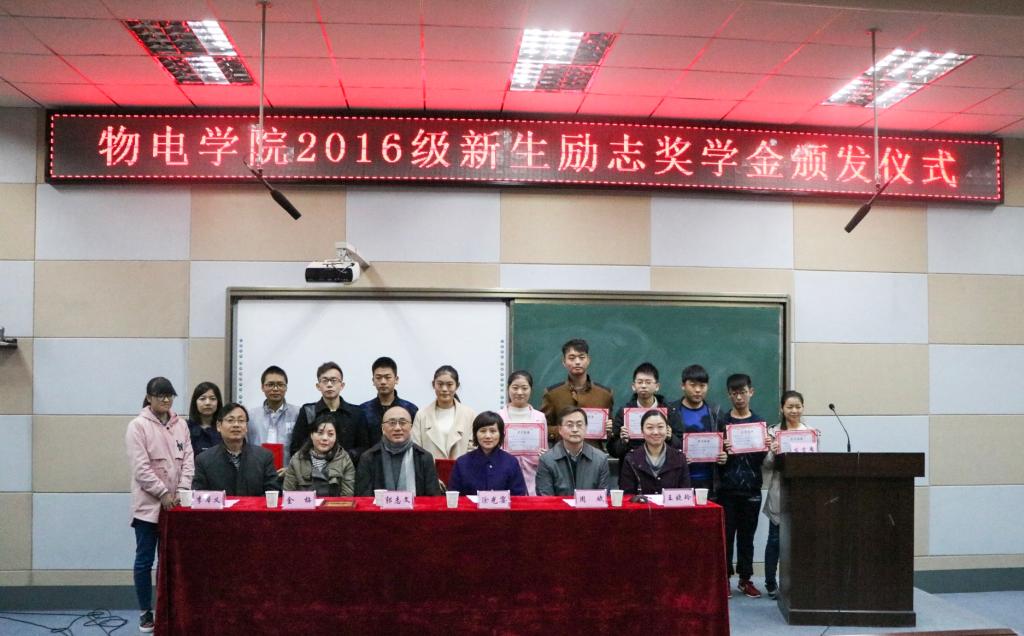 物电学院励志奖学金是由该院1981级物理学专业校友爱心捐资设立,旨在奖励、资助学院2016级品学兼优的学生,激励广大新生勤奋学习、努力进取、全面发展。高考成绩高出该生生源地第一批控制线60分及以上,具有良好的思想政治素质和道德修养的物电学院学子均可申请受助。经过评审委员会严格评审,电子科学与技术专业鲁任杰获得一等奖,电子科学与技术专业的程卓维、物理学专业汪鹏获得二等奖,物理学专业李正方等9名同学获三等奖。