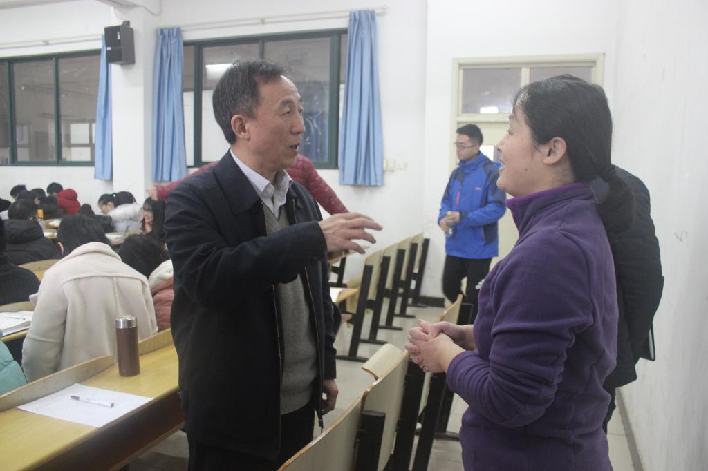 尚钢书记首先来到教学楼检查课堂情况,并深入高等数学课堂听课。课后,尚钢与任课教师余杨教授就课堂教学方式方法、学生听课出勤情况等进行了深入交流。
