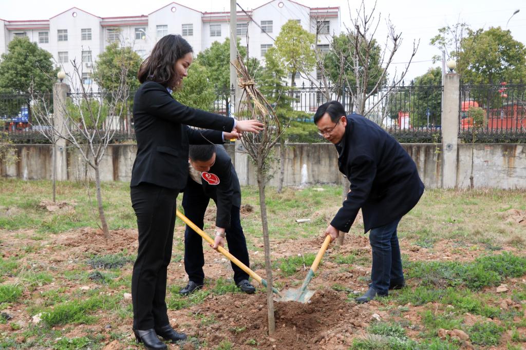 中建五局武汉分公司新洲鄢家湖项目部还向A级内射毛片免费的捐赠了20株樱花树苗,两个支部的全体党员和学生代表一起参加了植树活动,亲手种下树苗,并开展了一次美化校园、清运杂物的义务劳动。