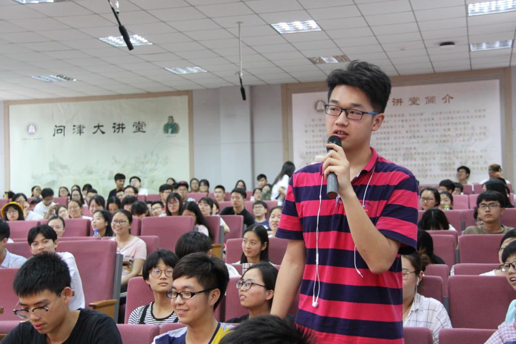 “在座的同学中从来没有谈过恋爱的请举手。”费俊峰以一个互动引出本次讲座的主题——恋爱。接着,他抛出问题“什么是恋爱?”与在场学生展开讨论。学生认为,爱情是两情相悦、是相扶到老、是相互依赖。费俊峰以人们依赖手机作类比,称人们喜欢用手机但不意味着爱手机,有强烈的需求不代表人们爱,阐述了喜欢和爱的区别以及爱情的真正含义。