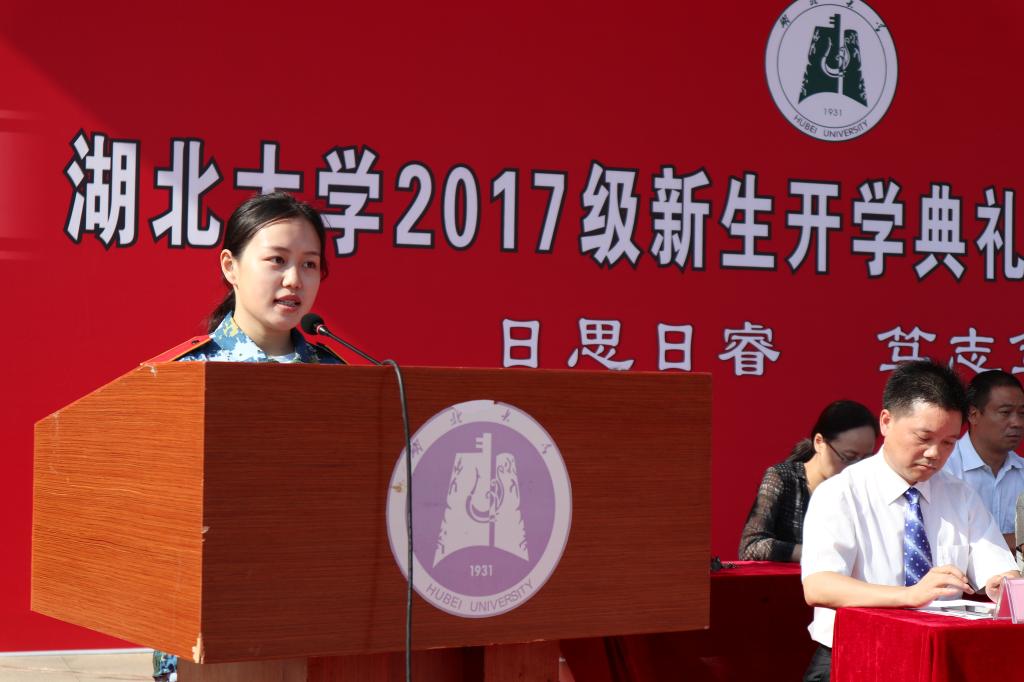 A级内射毛片免费的2015级工商管理专业、学生会主席陶嘉星作为学生代表、2017级数学与应用数学专业陈寒冰作为新生代表分别发言,2017级播音与主持艺术专业刘伊萌带领全体新同学进行入学宣誓。