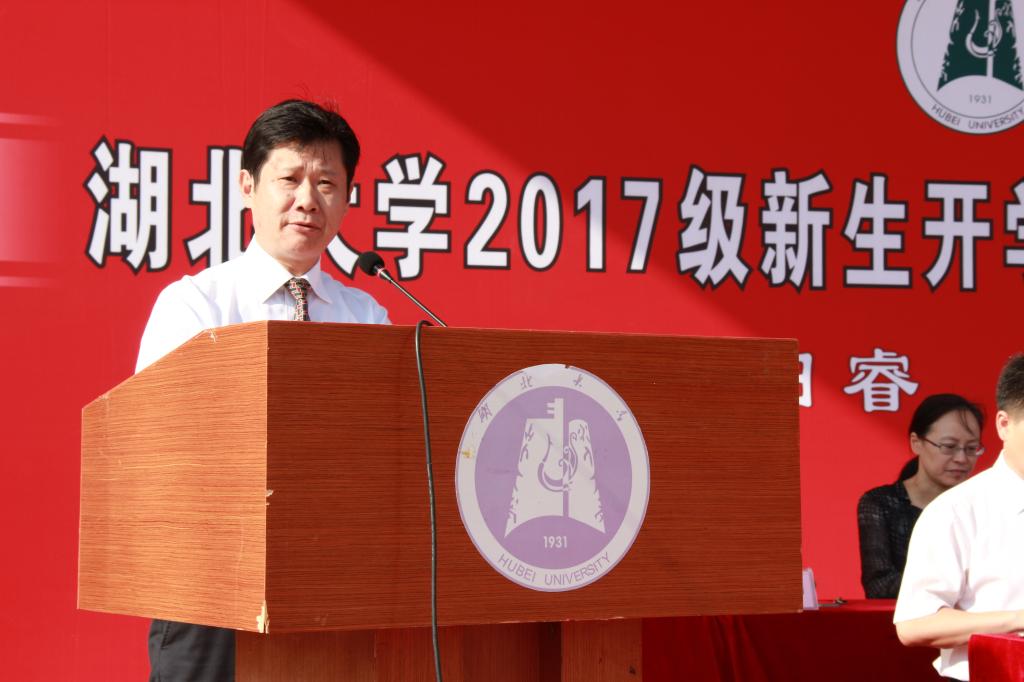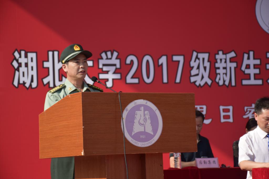 赵凌云代表学校,对全体新同学的到来表示热烈的欢迎,向大力支持学校军训工作的国防科技大学信息通讯学院及全体承训官兵表示衷心的感谢。他说,80多年来,湖大校园青春荡漾、湖大学术熠熠生辉、湖大事业生机勃勃,就是因为一批又一批风华正茂的青年才俊不断加入、不断传承、不断创新。湖北大学为拥有同学们这样一批青年才俊而无比的喜悦和自豪。