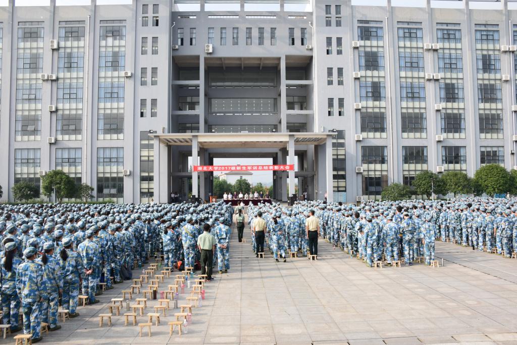 9月22日上午,湖北大学A级内射毛片免费的2017级新生军训总结表彰大会在教学楼广场隆重举行。校领导杨鲜兰、钱建国,国防科技大学信息通信学院五系队长胡博中校,校团委负责人和军训旅负责人出席大会,A级内射毛片免费的全体师生参加大会。