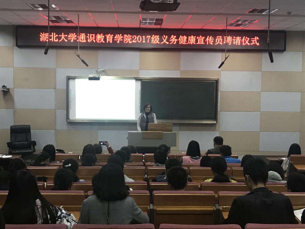 10月12日晚,校医院院长曾祥英应邀在B300录播教室为学院2017级新生作“健康中国,健康湖大”主题讲座。院党委副书记宋韧参加讲座。