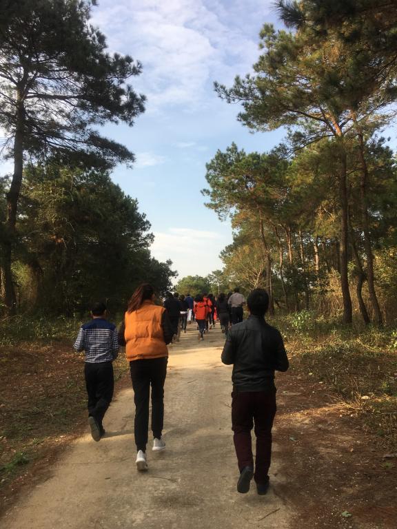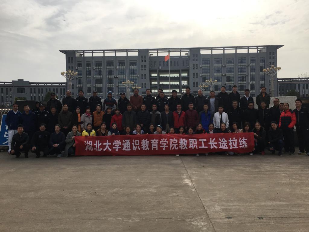 下午14:30,参加长途拉练活动的教职工90余人在学院正门集中合影,然后乘车前往距离阳逻校区11公里的拉练起点地赛雨山。大家经过简短的热身运动后,便顶着寒风,沿着阳逻倒水河大堤乡村公路向着目的地阳逻校区前进。大家在途中相互鼓励、相互扶助,途中还安排了应急车搭载体力不支人员。经过近2个小时的跋涉,全体拉练人员平安抵达阳逻校区。54人坚持完成拉练全程。