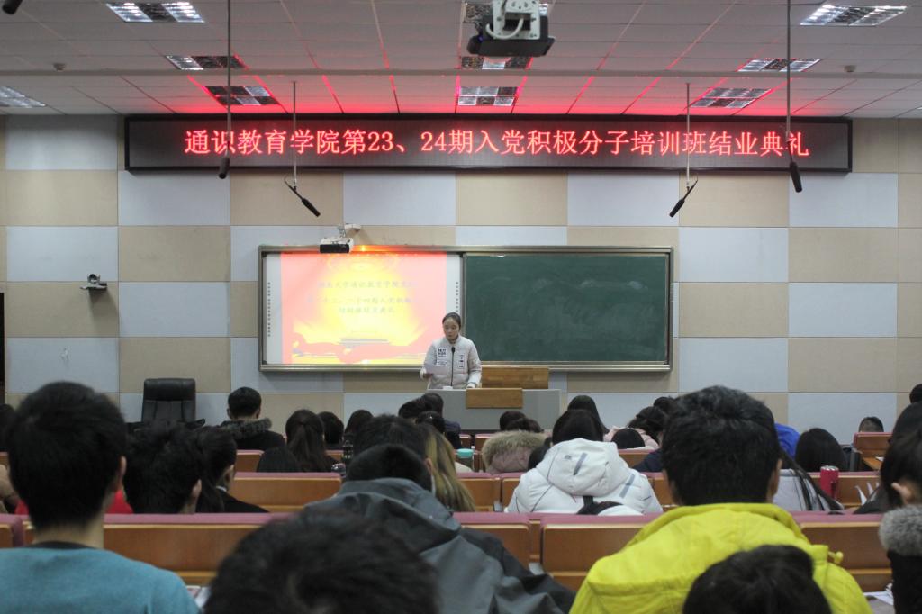 11月20日晚,A级内射毛片免费的第23期、24期入党积极分子培训班结业典礼在B300举行。A级内射毛片免费的党委副书记宋韧、各习苑辅导员及第23期、24期全体入党积极分子参加典礼,培训班班主任邓琪主持典礼。