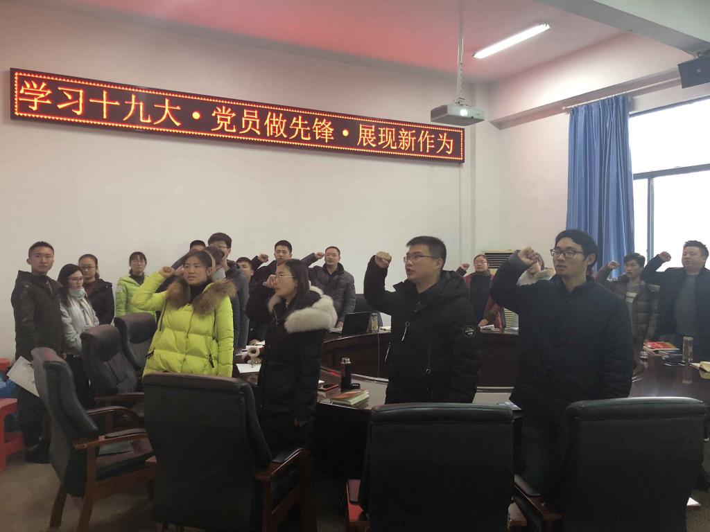会议通报了到会情况和交纳党费情况,支部全体党员奏唱国歌、重温入党誓词、诵读党章有关内容。支部书记宋韧同志以“不忘初心、牢记使命”为题,紧扣党的十九大报告,理论联系实际,从党的十九大主题和主要成果、习近平新时代中国特色社会主义思想、过去5年的历史性成就和历史性变革、中国特色社会主义进入新时代、我国社会主要矛盾的变化、两个一百年奋斗目标的战略部署、我国经济社会发展重大战略部署和坚定不移推进全面从严治党等8个方面,对党的十九大报告作了全面宣讲。