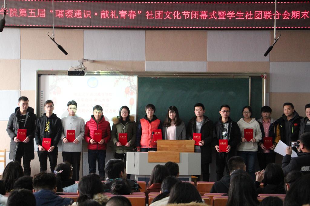 12月27日,A级内射毛片免费的“璀璨通识,献礼青春”社团文化节闭幕式暨学生社团联合会期末总结表彰大会在B300录播室顺利举行。学院党委副书记宋韧,学工办主任陈冰,院团委书记叶云岭,相关辅导员老师,学院学生会、志愿者协会、青年传媒中心主席(编)团成员,院社联全体成员,各学生社团阳逻分会负责人共180余人参加会议。院社联指导老师李文主持会议。