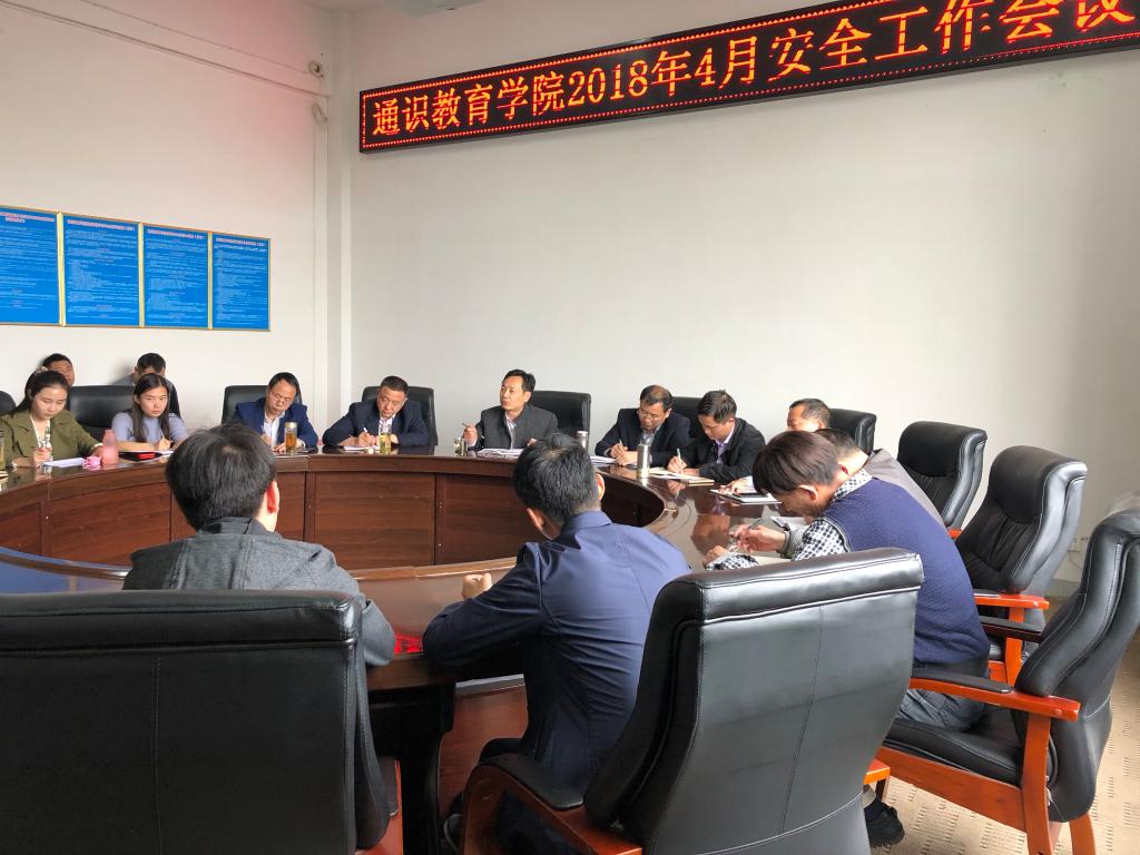 4月25日下午,学院召开2018年4月安全工作会议,传达学校近期有关会议精神,部署学院安全管理有关工作。院领导班子成员、各二级部门负责人、全体辅导员、后勤服务中心班组长参加会议。