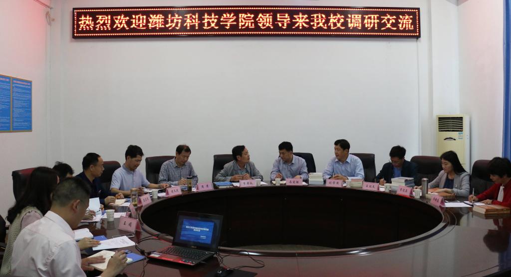 5月10日上午,潍坊科技学院教务处处长马爱胜、通识学院院长刘学周、教务处副处长王效文、通识学院副院长李俊英、通识学院文学教研室主任杨晓霞一行5人来院调研交流通识教育。学院领导班子成员会见了来访客人,相关部门负责人参与会见。