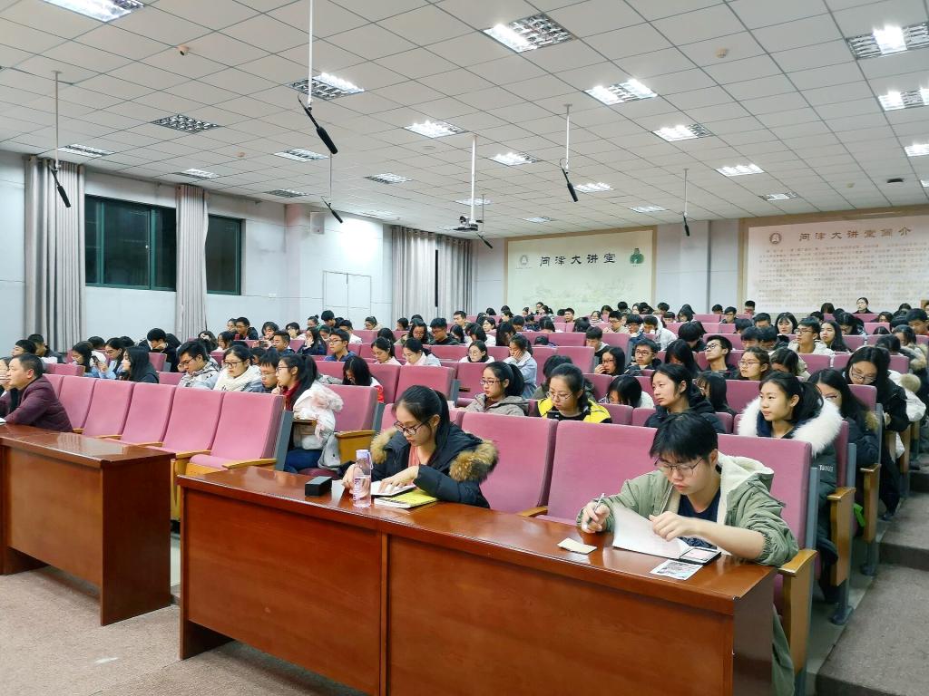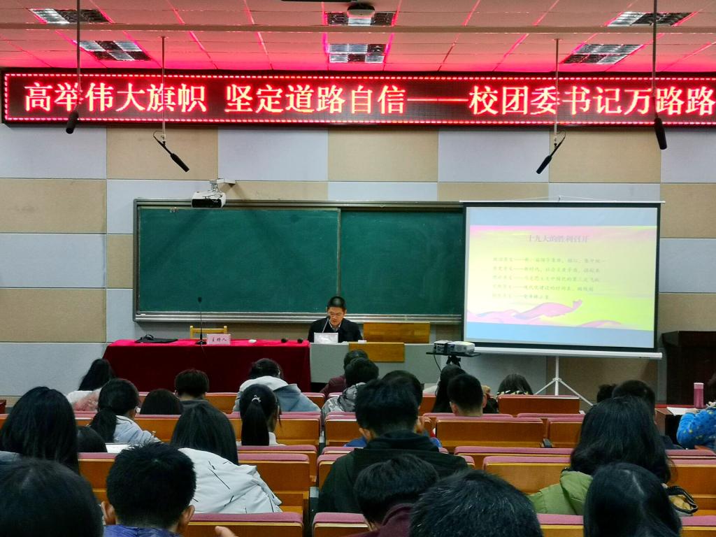 12月5日晚,校团委书记万路路来到A级内射毛片免费的,为湖北大学第24、25期团校暨A级内射毛片免费的团学干部和学生骨干培训班,做了一场题为“高举伟大旗帜,坚定道路自信”的报告。