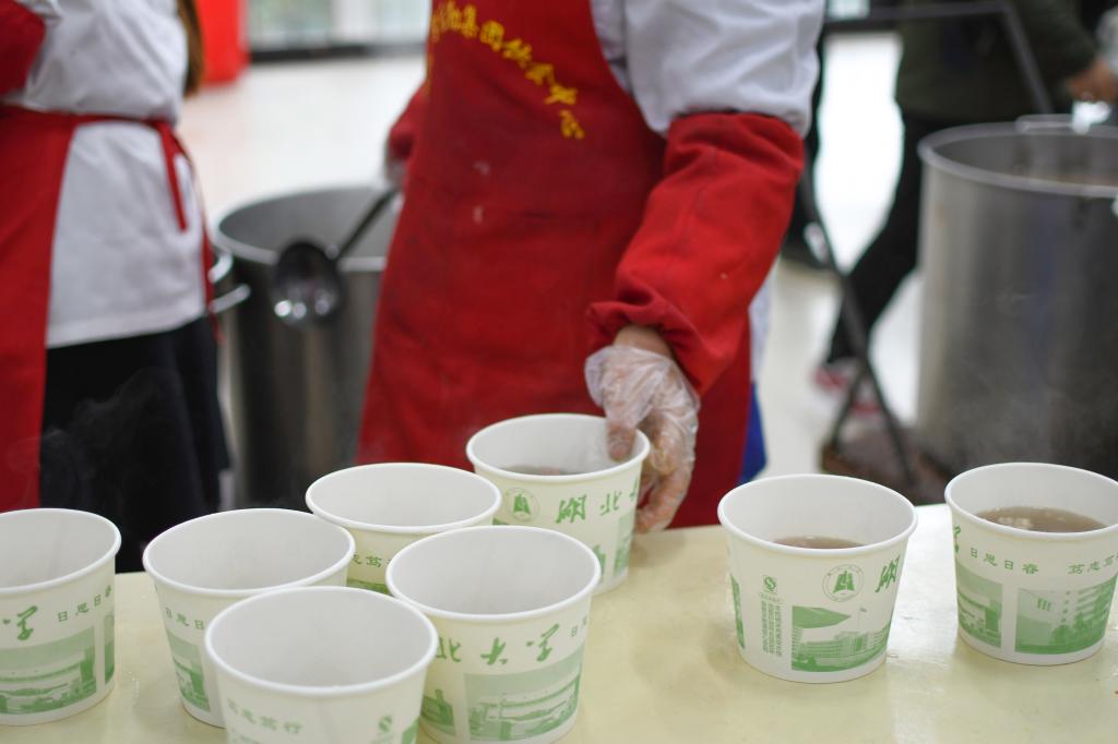 12月4日至6日,学生凭餐票就能在问津苑一楼领到免费藕汤。该活动得到了学生的热烈欢迎和一致好评,满满的四锅汤不到一个小时就被派送一空。