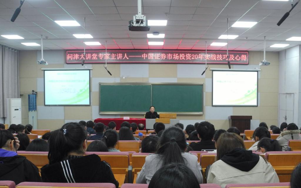 3月14日晚,长江日报报业集团金融研究院院长、我校1996届汉语言文学专业校友肖年红,应邀做客学院“问津大讲堂”,作“中国证券市场投资20年实战技巧及心得”主题讲座。