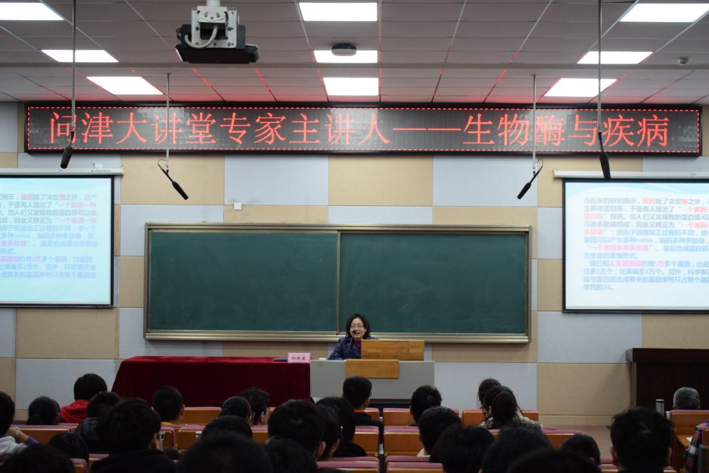 3月27日晚,原湖北大学生命科学学院院长杨艳燕教授做客“问津大讲堂”,为2018级材料化学专业学生讲解生化酶与疾病相关知识,化学化工学院退休教授方光荣出席讲座。