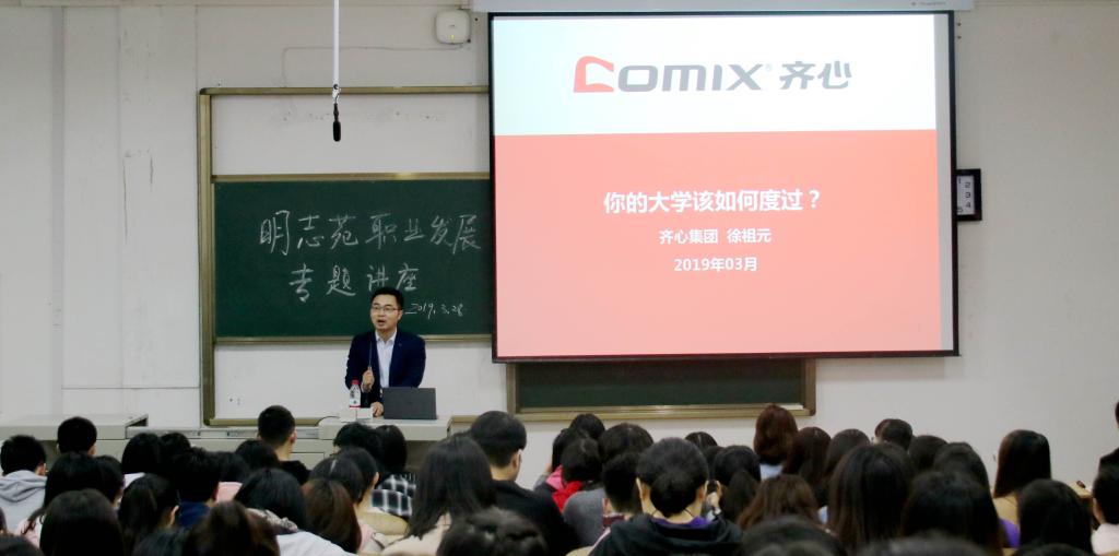 3月28日晚,齐心集团人力资源部总监徐祖元来院与2018级工商管理大类学生交流专业发展,作“你的大学该如何度过?——来自甲方的建议”主题讲座。