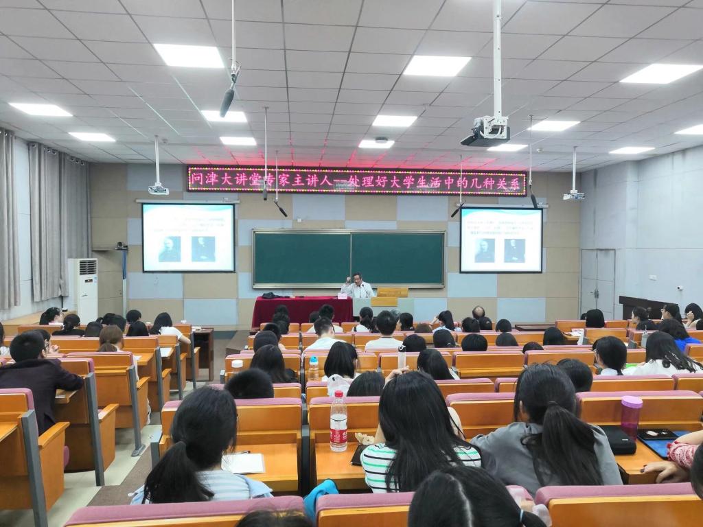 4月25日晚,学校退休教授严梅福应邀来院做客问津大讲堂,作“大学生的人际交往和人际关系”讲座。