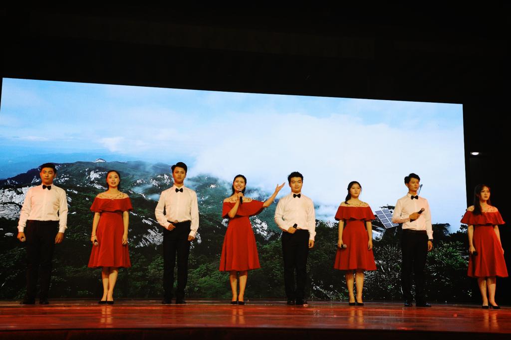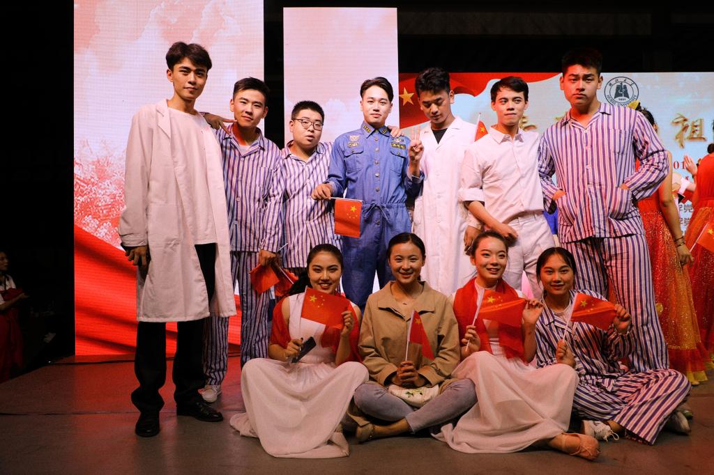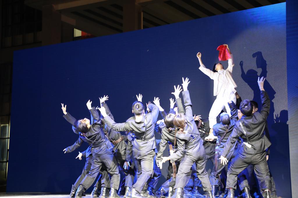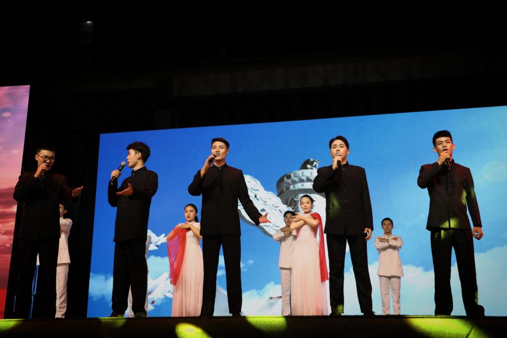 由学校龙狮团带来的开场表演《盛世欢腾》拉开了晚会的序幕,晚会分为芳华长咏岁月歌、青春拥抱中国梦、砥砺奋进新时代三个篇章。