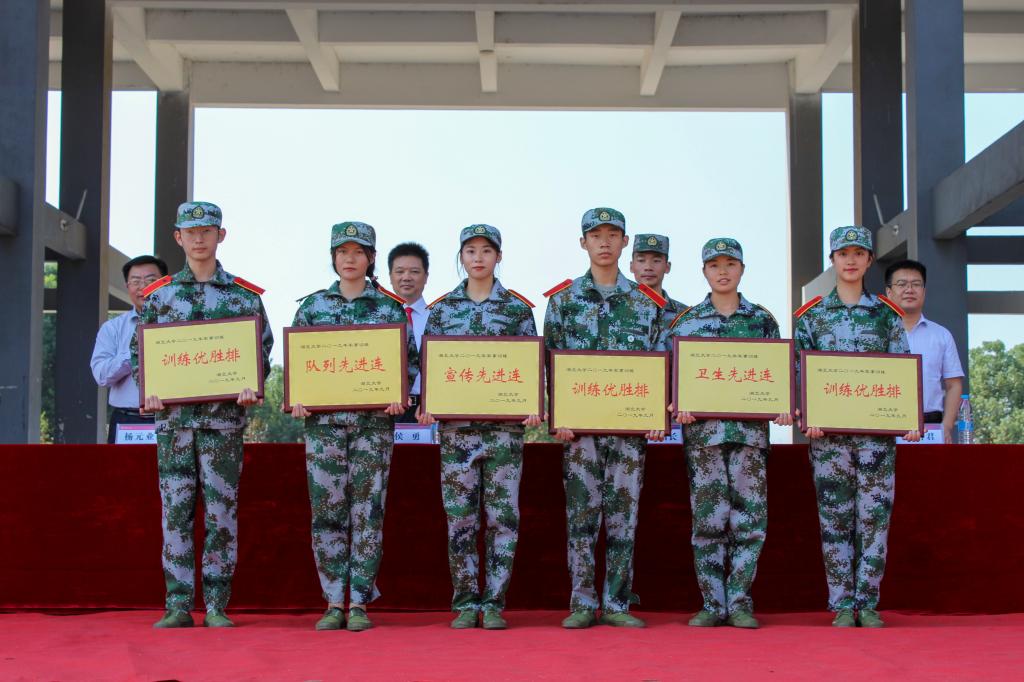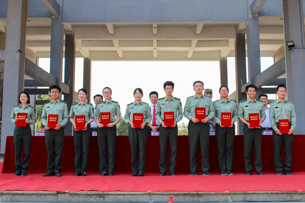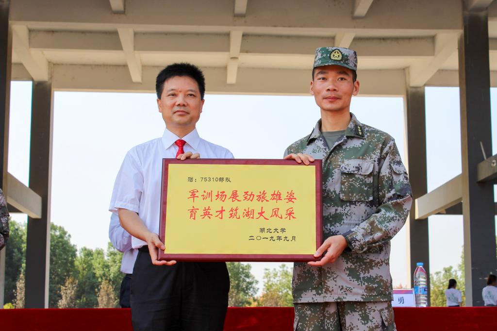 校党委副书记侯勇向中国人民解放军75310部队赠送牌匾。校党委宣传部常务副部长、军训旅政委刘靖君宣读军训表彰文件。主席台就坐领导分别为优秀指导员、优秀教官及先进集体、优秀学员代表颁奖。