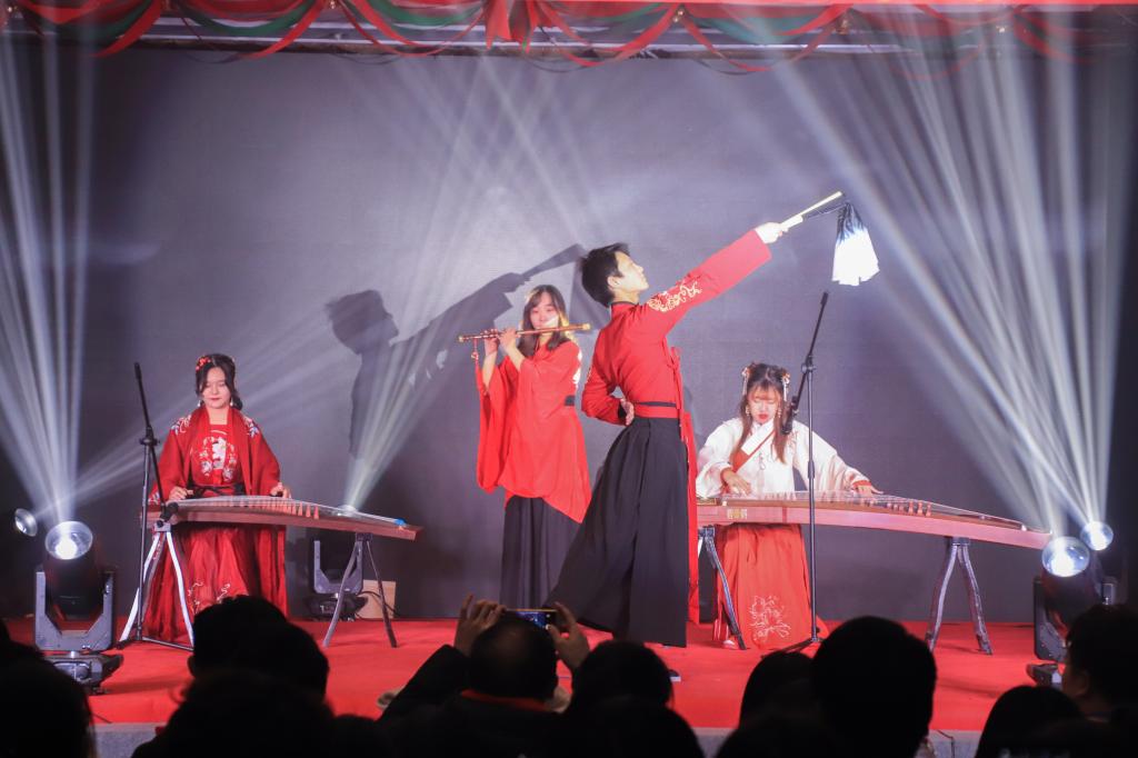 伴随着欢快激昂的鼓点,龙狮团隆重登场。一曲盛大恢弘的《盛世欢腾》拉开了晚会的帷幕,龙狮团成员娴熟的技巧引发现场阵阵欢呼。