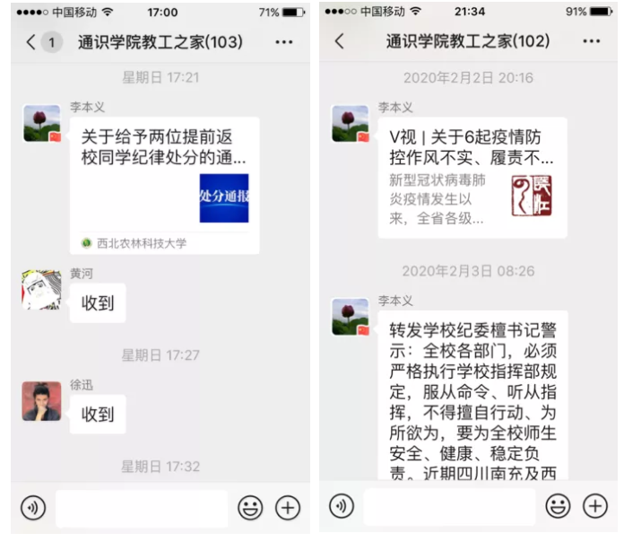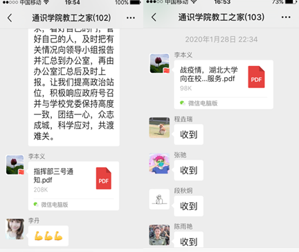 工作专班坚持把牢正确舆情导向,教育引导全体教职工管好自己和身边人,对于各类非官方消息严格做到不听、不信、不传,并在第一时间通过电话、微信、QQ等方式将有关文件精神和指挥部所有指令传达至每一名师生员工,不定时发布疫情防控相关信息,积极传播利于疫情防控的正能量,目前累计发布疫情防控专班通知10份。
