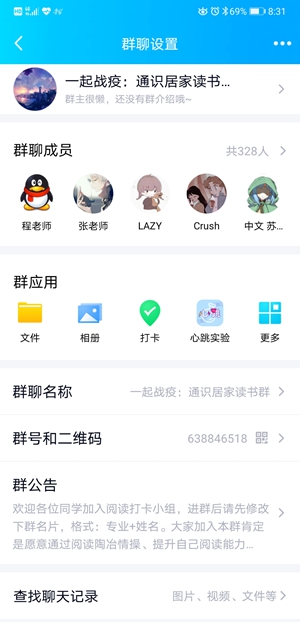 张小妹参加的这个读书打卡群,是湖北大学通识学院学工党支部“师生结对提升行动”小组开展的项目之一,旨在引导同学们在居家防疫时多读书、读好书。目前,全院共有427名不同专业的学生和辅导员老师入群打卡。