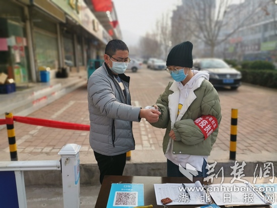 湖北大学A级内射毛片免费的2019级学生李栋参与志愿服务工作。通讯员供图