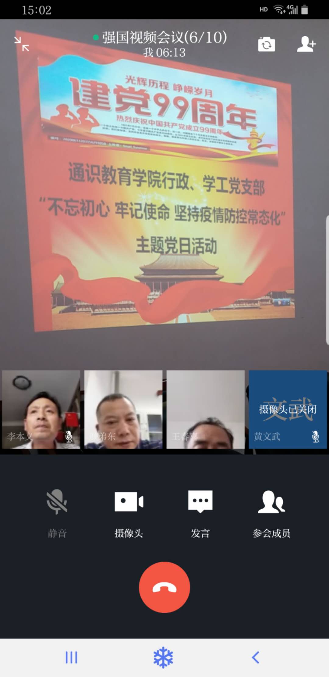 7月3日,学院行政、学工党支部在学院二楼会议室和学习强国平台会议室两个会场同步开展“不忘初心、牢记使命 坚持疫情防控常态化”主题党日活动。行政党支部书记颜弟东主持会议,行政、学工支部全体党员参加会议。