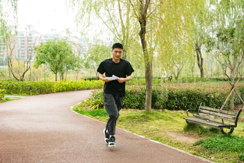 第一位到达终点的冯至圆老师用时54分14秒。冯至圆说,自己在比赛之前就有拿第一名的信心,取得这样的名次在意料之中。“虽然跑到第三圈的时候很累,想要放弃,但看到程老师紧紧跟在后面,就还是咬牙坚持下来了。”他笑着说。
