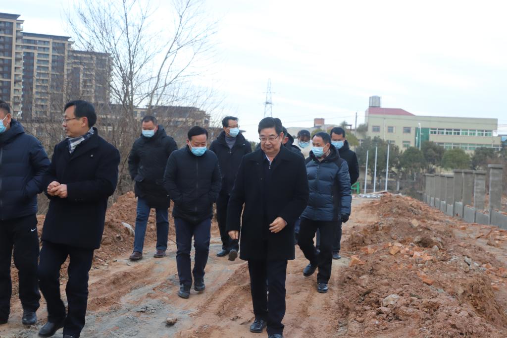 座谈会前,钱建国率学校相关职能部门负责人深入阳逻校区二期征地围墙施工现场进行察看。大家研究了校区二期征地临时通道及门房的修建、按现地形地貌对该地块进行整理等具体事项。