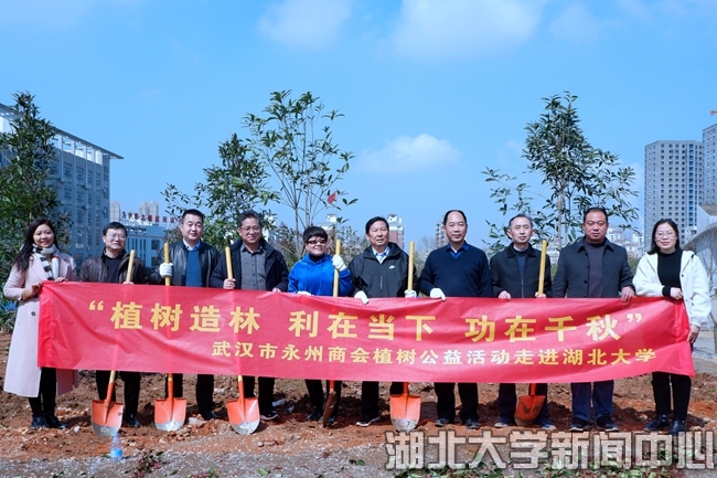 为迎接本次植树活动,武汉市永州商会特地从湖北咸宁调运了120余棵桂花和红叶石楠树苗,蕴涵着商会对湖北大学“桃李满天下”的真诚祝福。商会副会长钟柳玲表示:“我们希望公益植树活动走进大学校园,带动师生共同响应习近平总书记‘绿水青山就是金山银山’的号召,为湖北大学带来更多绿色。”