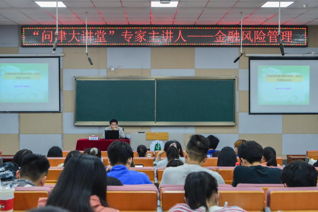 4月22日,湖北大学商学院教授张建民应邀来院做客“问津大讲堂”开展“金融风险管理”主题讲座,为弘毅苑学生讲解金融风险管理的目标、指导思想与方法。