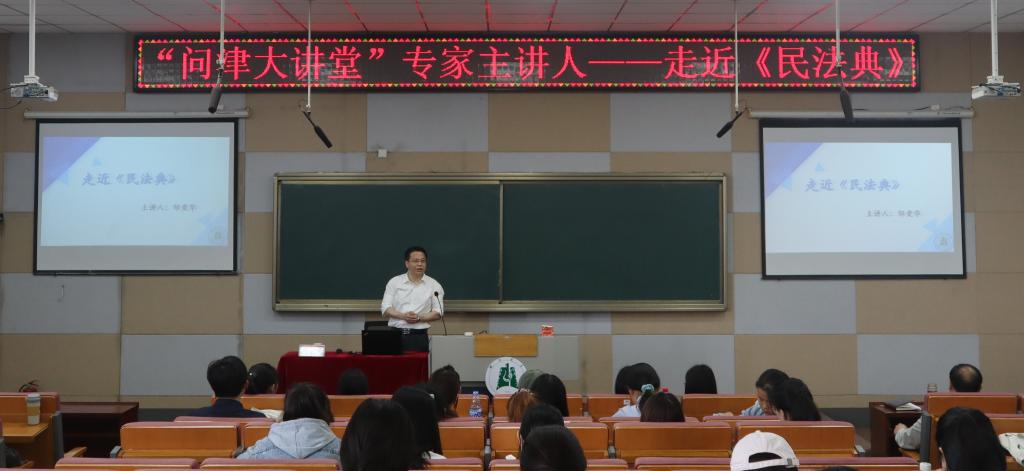“请大家先考虑两个问题:死人是不是人?前公公和前儿媳能不能结婚?”报告开始前,邹爱华抛出问题引学生思考。现场学生纷纷开始讨论,答案不一。“是或不是?听完讲座你们就知道答案了。”邹爱华留下悬念,随即带领大家正式走进《民法典》。
