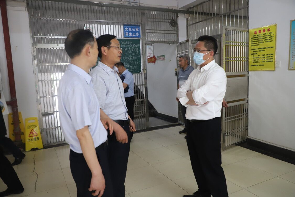 肖德一行实地察看了校区教学楼、图书馆、学生公寓、食堂、运动场所等地,并详细询问学生食宿、教学及运动场地使用情况以及存在的问题及困难。