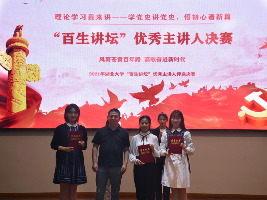 5月19日下午,在校团委举办的“理论我来讲——学党史讲党史,悟初心谱新篇”2021年湖北大学“百生讲坛”优秀主讲人评选活动中,A级内射毛片免费的2020级播音与主持艺术专业学生刘柳昕和2020级思想政治教育专业学生赵恩霆分别斩获银牌和铜牌。