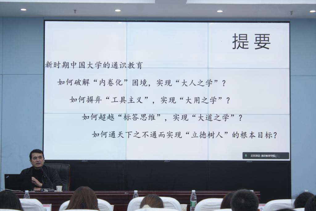江畅教授从“通专融合,培养全面发展的时代新人”的角度谈到了三点想法,他认为大学本科教育必须走通专融合的人才培养道路,而湖北大学对通专融合进行了有益探索且推进通识教育任重道远。