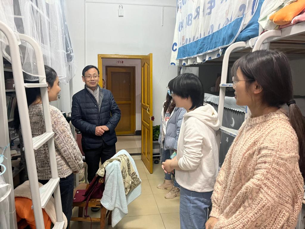 走访过程中,李本义院长一行亲切地和同学们进行交流,询问学生的生活、学习情况,并对学生寝室安全状况进行现场检查。他鼓励同学们在平常的生活中,注意提高安全意识,杜绝使用违章电器,保护好个人财产安全与人身安全,切实提高个人的防范意识和防护能力。同时,他提醒同学们加强内务清洁管理,保持宿舍环境卫生,并勉励同学们以十九届六中全会精神为指导,充分了解通识教育内涵,勤奋学习、努力向上,力争成为全面发展的通识之才。