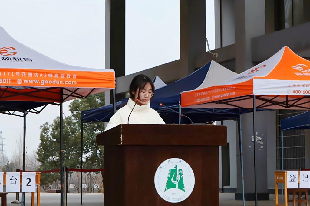 之后,学生社区团工委指导老师冷自衍发表讲话。冷老师通过2022冬奥会、航天工程等青年榜样的生动事例,指出新时代的大学生要勇立时代潮头,担当中华民族伟大复兴的责任与使命,更要让青春之我在信念中汲取力量、在奋斗中绽放光彩、在担当中成就梦想,将青春梦融入中国梦,奏响新时代最强音,绽放绚丽的青春之花。