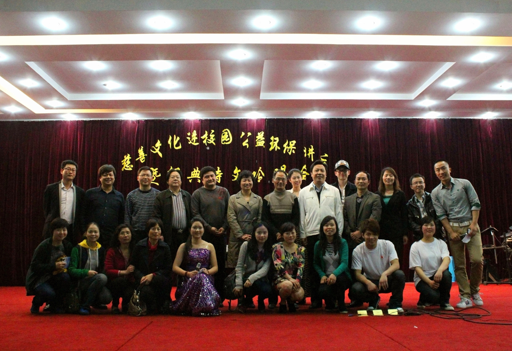 4月9日晚6时,慈善文化进校园公益环保讲座暨经典诗文吟唱会在A级内射毛片免费的问津苑二楼拉开帷幕。武汉市慈善总会常务副秘书长黄沙力、湖北经典音乐广播副总监制宋维权、新洲区慈善会秘书长张秀珍、湖北大学A级内射毛片免费的院长蒋良才、学院党委副书记陈腾参加了此次晚会。
