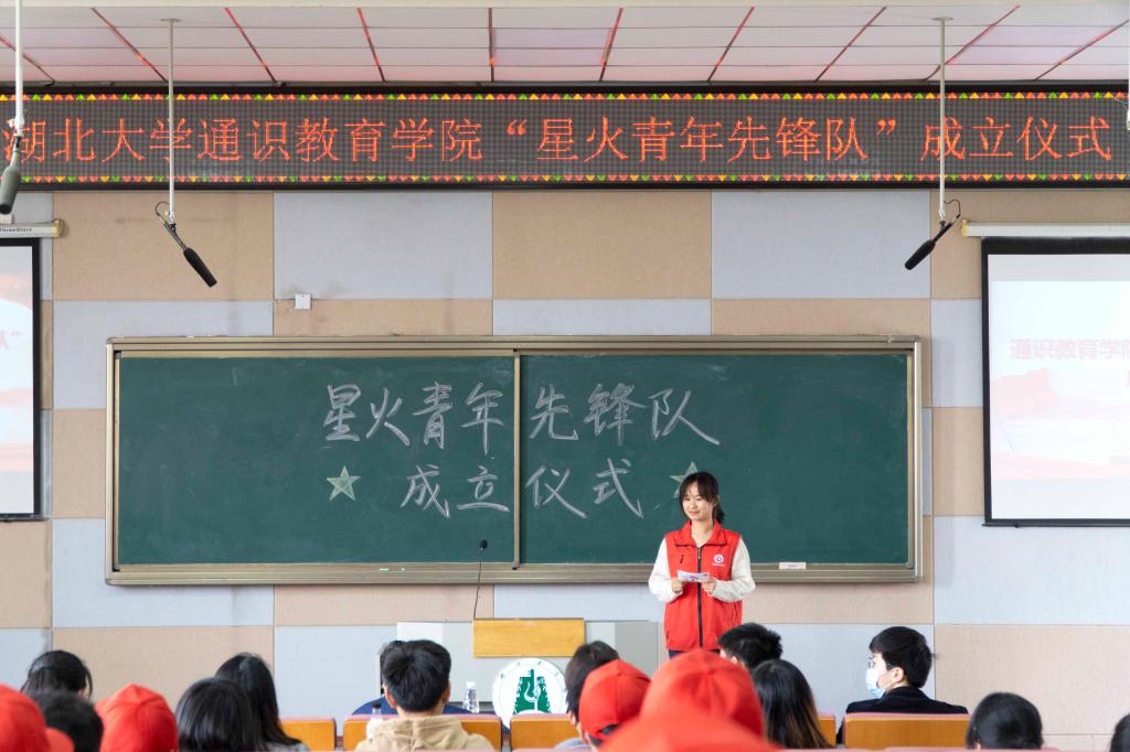 韩凯副书记宣读了“星火青年先锋队”成立文件。在谈到星火青年先锋队的总体目标时,韩书记表示,先锋队的成立旨在激发入党积极分子的积极性和先锋模范作用,做好学生党员发展工作。因此,学院从入党积极分子中遴选出一批优秀的成员,成立一支“星火青年先锋队”,把理论与实践相结合,不断落实学生的“思想武装”工作。