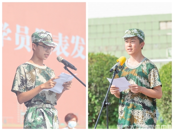 材料科学与工程学院材料化学专业阮子涵、湖北大学曼城联合学院电子信息工程专业张心清作为优秀学员代表发言,倡议同学们把在军训期间养成的良好品德和作风带到今后的学习和生活中去,用奋斗书写青春华章。