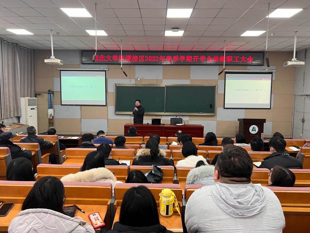2月9日上午,阳逻校区召开2023年春季学期开学全体教职工大会。A级内射毛片免费的班子成员、全体教职员工、后勤服务中心负责人及班组长参加会议。大会由A级内射毛片免费的党委书记焦新曦主持。