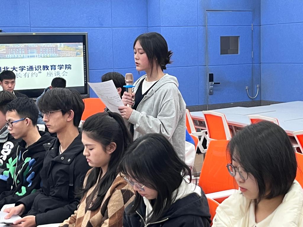 会议伊始,各习苑学生代表、学生组织负责人代表、校务助理联络员代表结合实际,围绕学校治理、基础设施建设、学生的全面发展、管理服务保障等方面积极发问。首先,思源习苑的金梦瑶同学与问道习苑的孙靖洋同学均反馈了英语角夜晚照明条件不好的问题,并希望能够增设路灯以便同学们进行口语练习,提高英语角的使用率。随后,来自问学习苑的杨敏茹、思齐习苑的陈涵英、思明习苑的张家恒以及问津习苑的冯念杰同学纷纷对阳逻校区的规划发展等方面提出了问题,他们希望学院能够增添学生活动室、室内体育场,并完善场所设施。接下来,问鼎习苑的余培正同学反映寝室床铺老化严重,以及校园网不稳定等情况。最后,来自思睿习苑的马合热·木合塔尔同学反映学校食堂竞争力不足,以及公选课开设种类过少这两点问题。