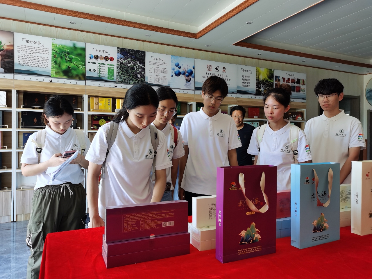 “每年茶叶产量有多少?”“线上+线下销售情况如何?”在甘宗祠茶叶专业合作社,队员们兴致勃勃地参观了贡茶扶贫车间生产线、茶产品展示厅,就该村茶产业的发展延伸、茶生产工艺流程及电商销售带动进行了深入了解。通过实地调研,同学们感受到了电商在农业产业发展中展现的别样风采和带动能量,对互联网+思维助力乡村发展有了更加深切地感悟。