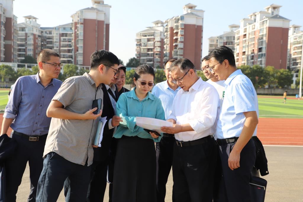 戚薇一行现场考察了校园供地使用情况以及产教融合中心项目建设进展。