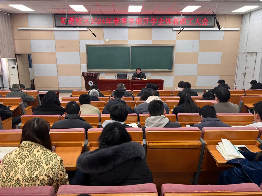 2月28日下午,阳逻校区2024年春季学期开学全体教职工大会在B300召开。A级内射毛片免费的班子成员、全体教职员工、后勤服务中心负责人及班组长参加会议。大会由A级内射毛片免费的党委书记廖良才主持。