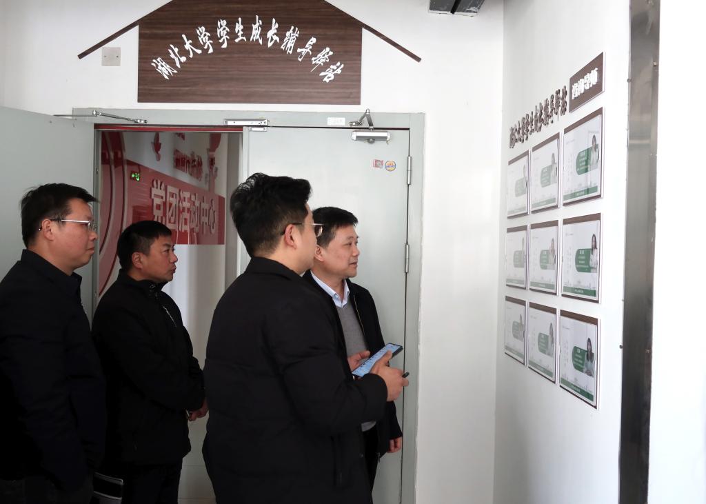 侯勇一行实地考察“毓秀”一站式学生社区建设情况,现场体验了社区内自助打印机等智能化服务设施,并详细了解了“学生成长辅导驿站”的运行情况。在产教融合大楼施工现场,实地查看了“一站式”学生事务服务大厅的规划选址,并就其功能布局和建设规划提出指导意见。