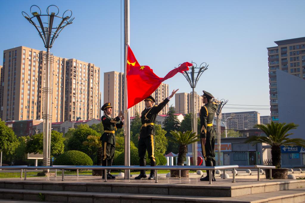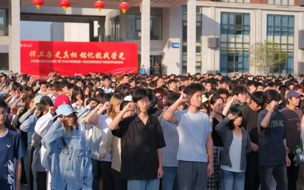 仪式尾声,2024级国际关系与国际事务专业学生陈是阳光带领全体学生庄严宣誓。在师生齐唱《湖北大学校歌》的悠扬旋律中,升旗仪式圆满落幕。