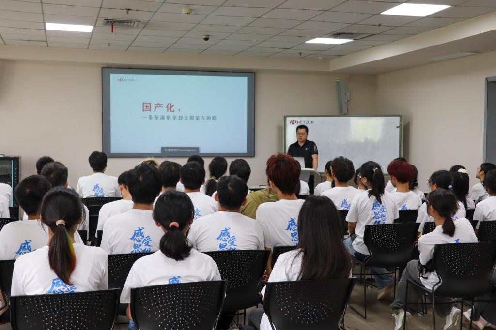 下午,一行人来到武汉华工正源光子技术有限公司。同学们身着防尘衣帽,走进洁净的生产车间,近距离观察光电产品的生产环节。工作人员详细介绍了每一道工序,并为同学们介绍了企业的发展以及背后的国家扶持政策,让同学们深刻认识到科技企业成长与国家战略支持的紧密联系。