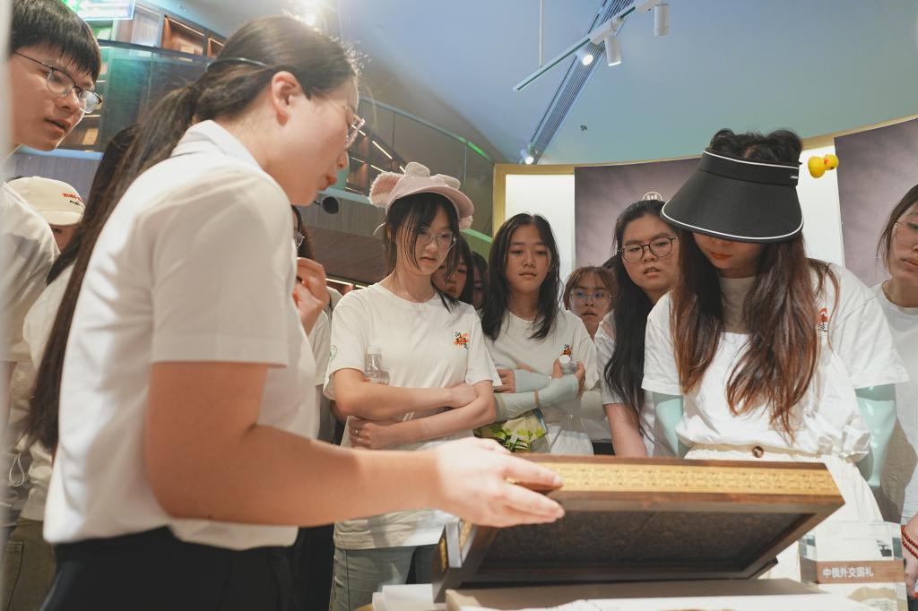 漫步羊楼洞古镇,斑驳的青砖路面上的独轮车辙印,以及厘金局、电报局、羊楼洞公堂、阜昌茶庄等历史遗址,无声诉说着往昔的繁华。师生们走进以“博展三国烽火,物藏五千春秋”为主题的中国青砖茶博物馆,这里陈列着晋朝、三国、唐宋等朝代的茶具文物,这些珍贵的展品为师生们展开了一副生动立体的茶文化历史画卷。