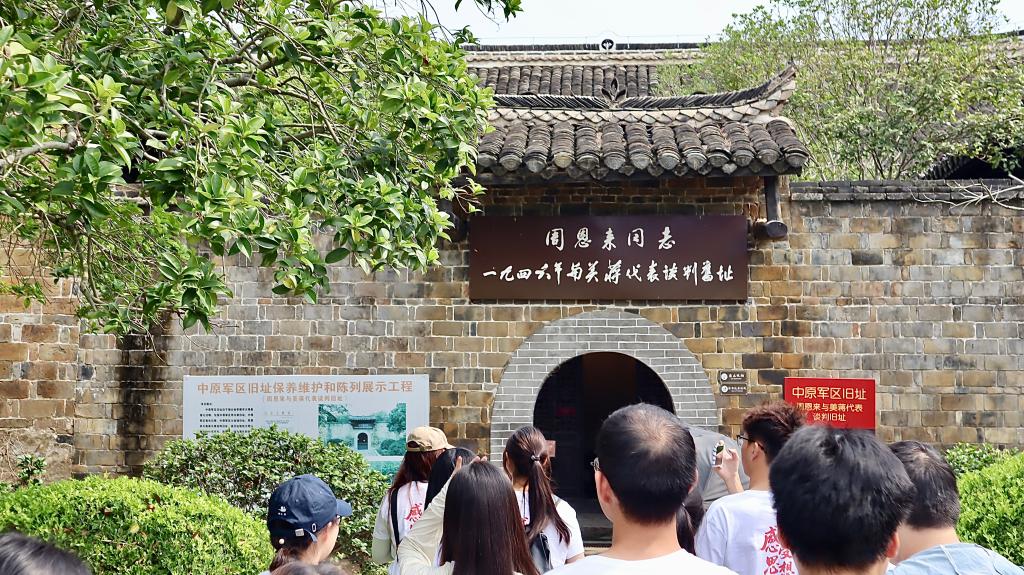 研学首站抵达中原大突围纪念馆。在专业讲解导师的深情讲述中,学子们深入了解了1946年中原军区部队在生死存亡关头以弱胜强、成功突围的历史壮举。馆内浮雕、史料与旧址遗迹,将那段烽火岁月具象呈现。同学们凝视战略地图、触摸历史实物,深刻体悟革命先辈“为了民族独立和人民解放”所展现的坚定信念与牺牲精神。在纪念馆前广场,一堂别开生面的“红色朗诵”体验式党课同步展开,铿锵誓言回荡,理想信念在此升华。